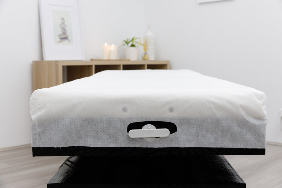 Introducing the first-ever therapy bed mattress topper — a soft memory foam layer covered in a TPU fabric that provides the ultimate comfort, cushioning and support for your clients.
